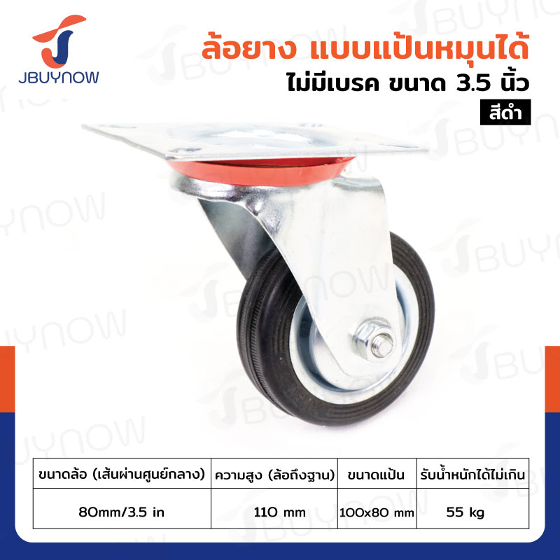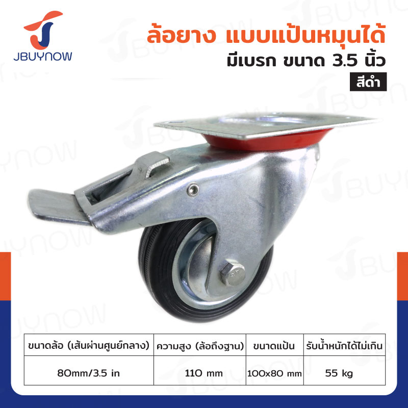 ล้อยางดำ 3.5 นิ้ว แป้นเป็น มีเบรก JBUYNOW JF-1039085