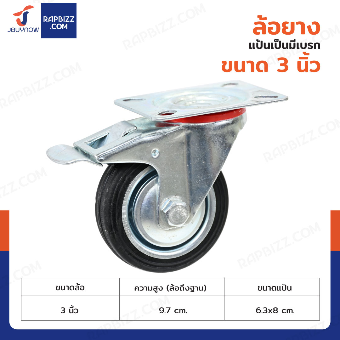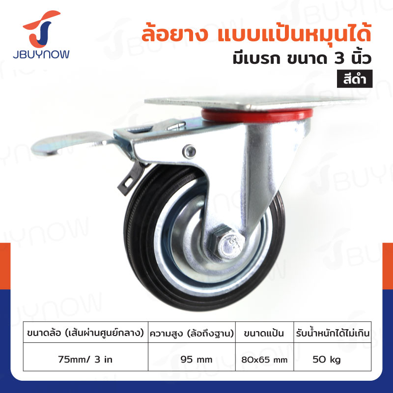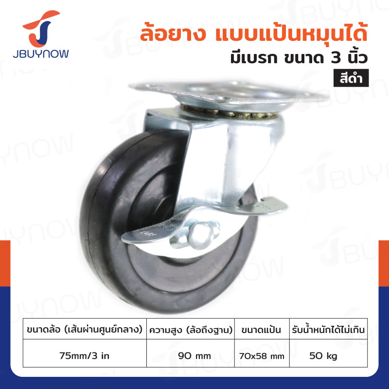 ล้อยางดำ 3 นิ้ว แป้นเป็น มีเบรก JBUYNOW JF-1038075