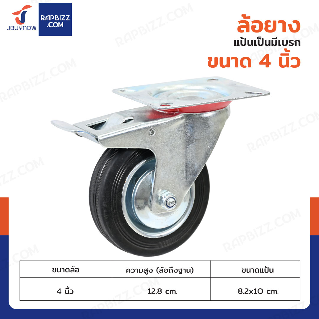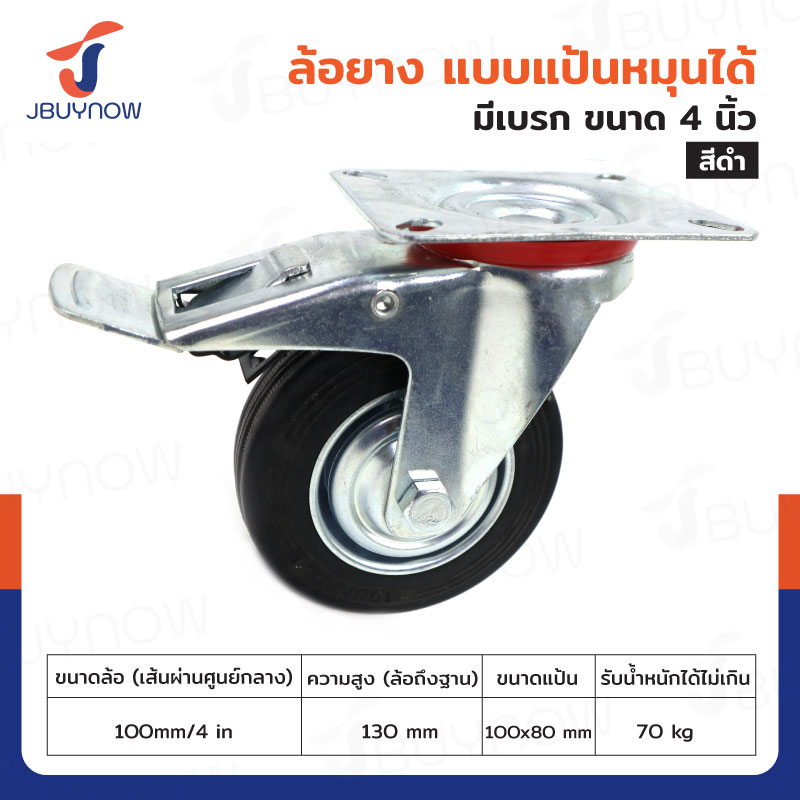 ล้อยางดำ 4 นิ้ว แป้นเป็น มีเบรก JBUYNOW JF-1040100