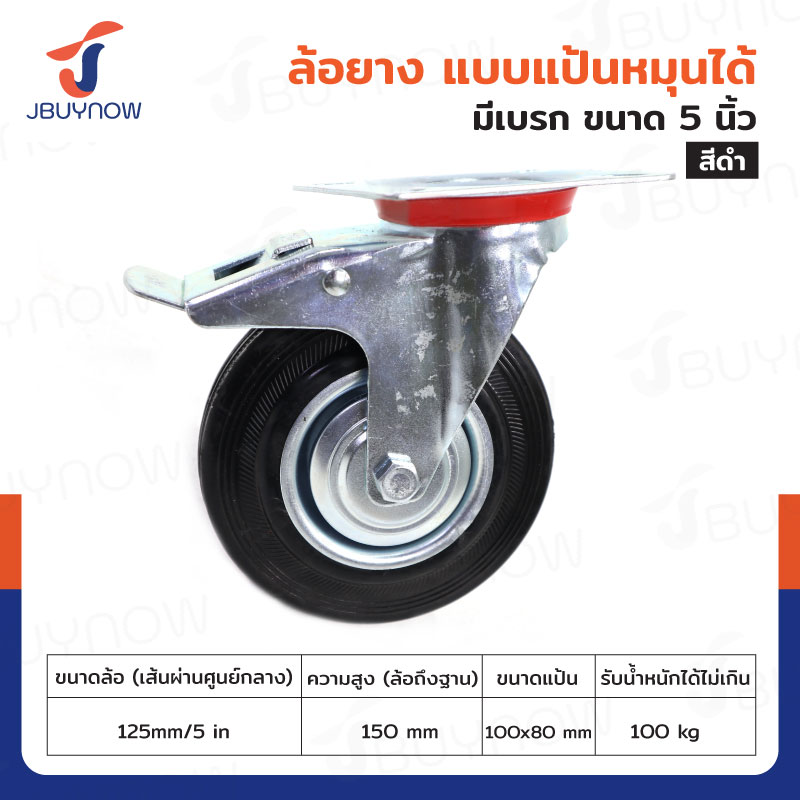 ล้อยางดำ 5 นิ้ว แป้นเป็น มีเบรก JBUYNOW JF-1041125