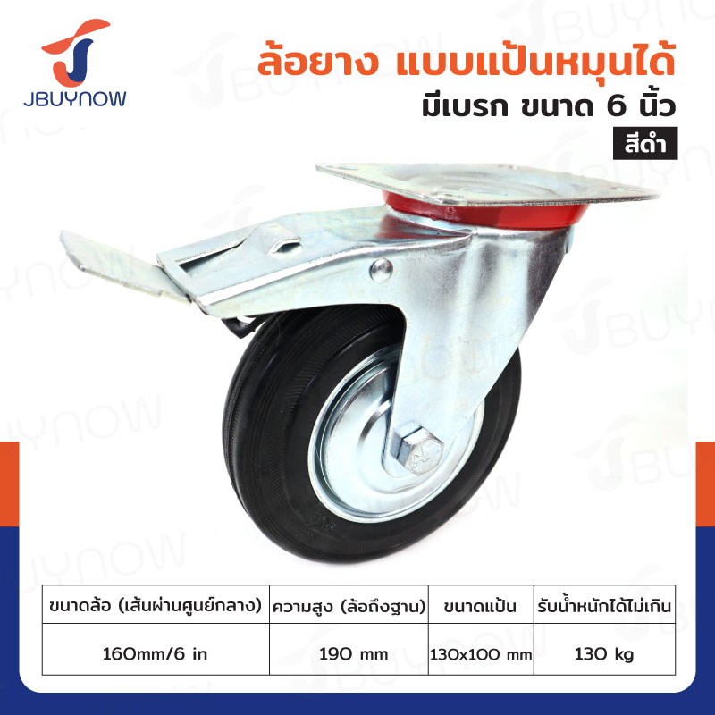 ล้อยางดำ 6 นิ้ว แป้นเป็น มีเบรก JBUYNOW JF-1042160