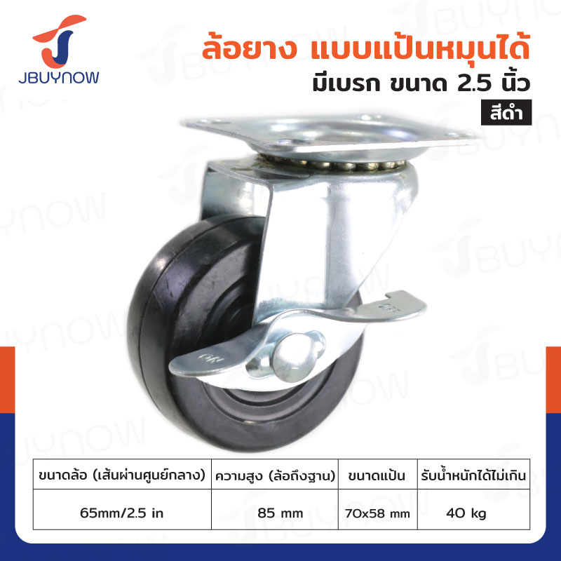 ล้อยาง 2.5 นิ้ว แป้นเป็น มีเบรก JBUYNOW JF-1284065
