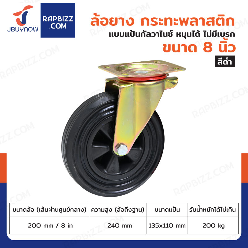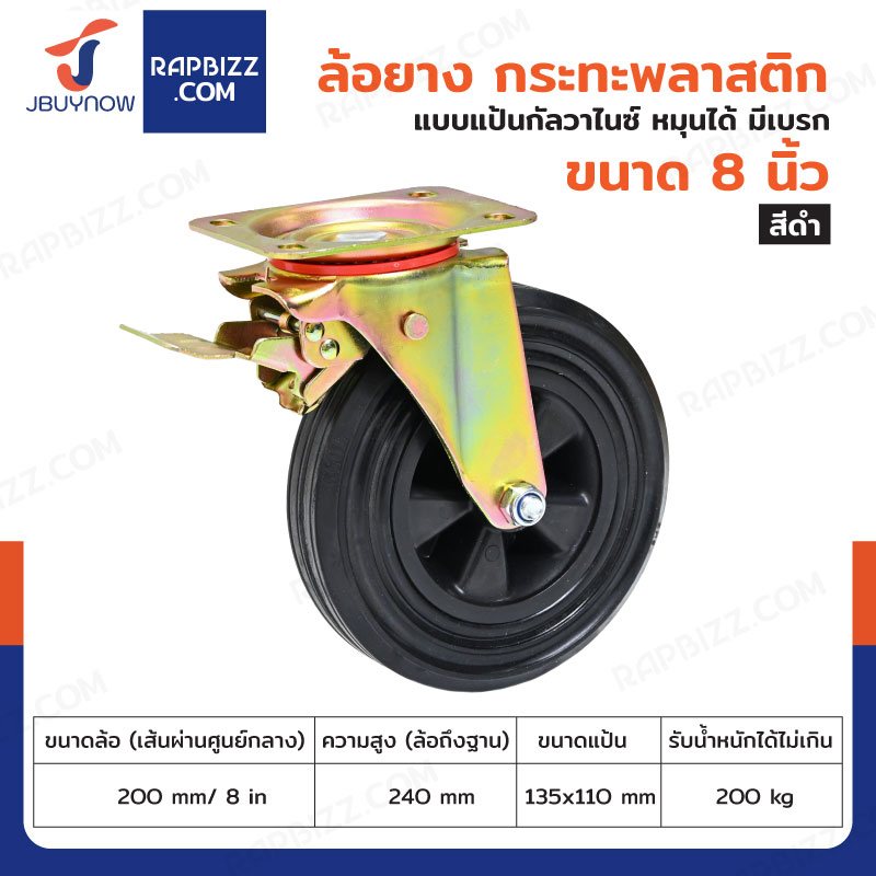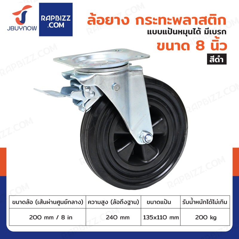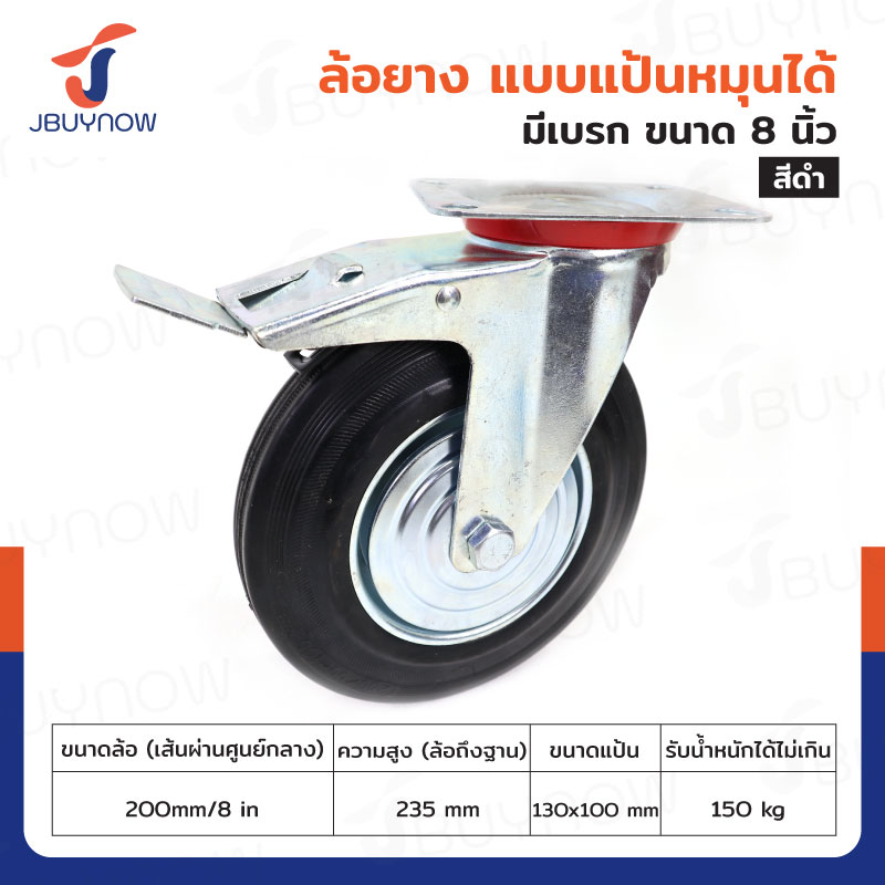 ล้อยางดำ 8 นิ้ว แป้นเป็น มีเบรก JBUYNOW JF-1043200