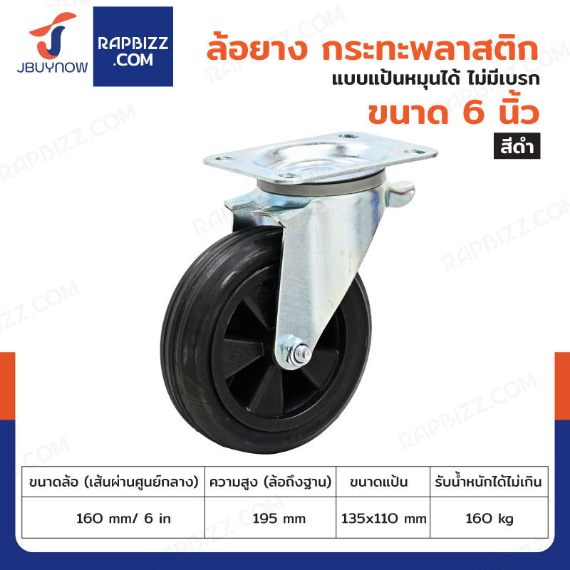 ล้อรถเข็น 6 นิ้ว กระทะพลาสติก แป้นเป็น JBUYNOW JF-1113160