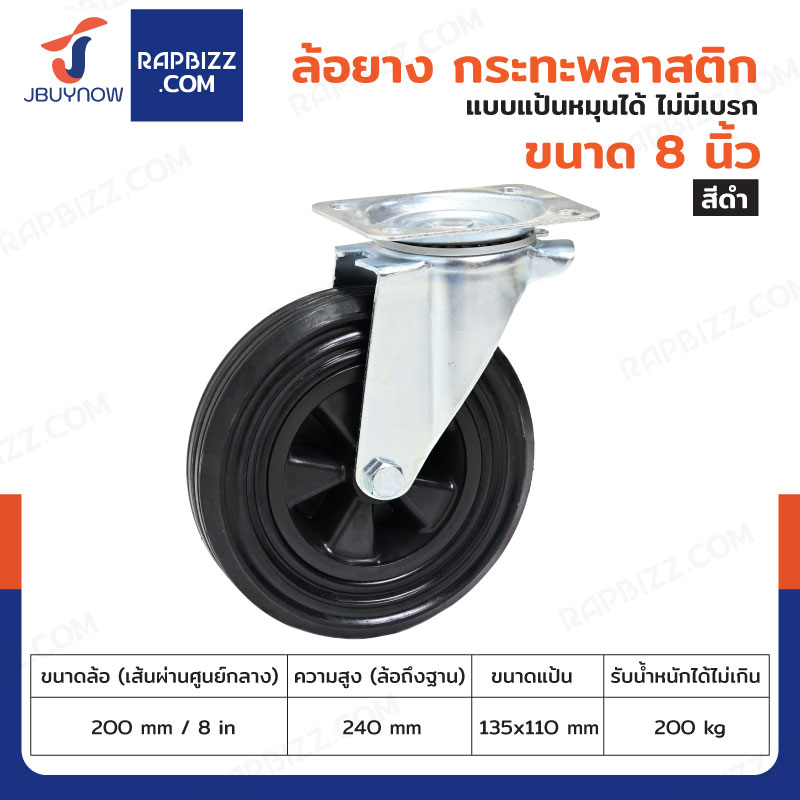 ล้อยางดำ 8 นิ้ว แป้นเป็น JBUYNOW JF-1036200