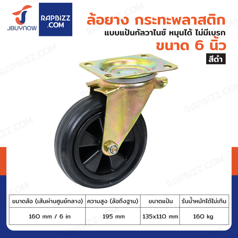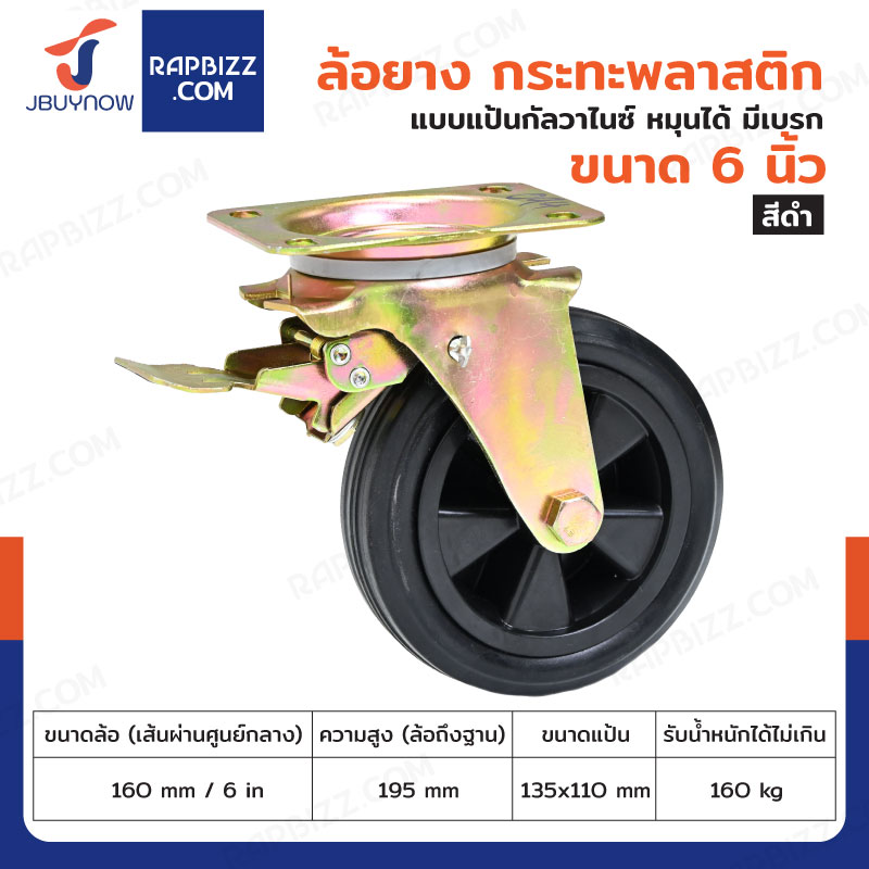 ล้อรถเข็น 6 นิ้ว กระทะ พลาสติก แป้นเป็น กัลวาไนซ์ มีเบรก JBUYNOW JF-1119160