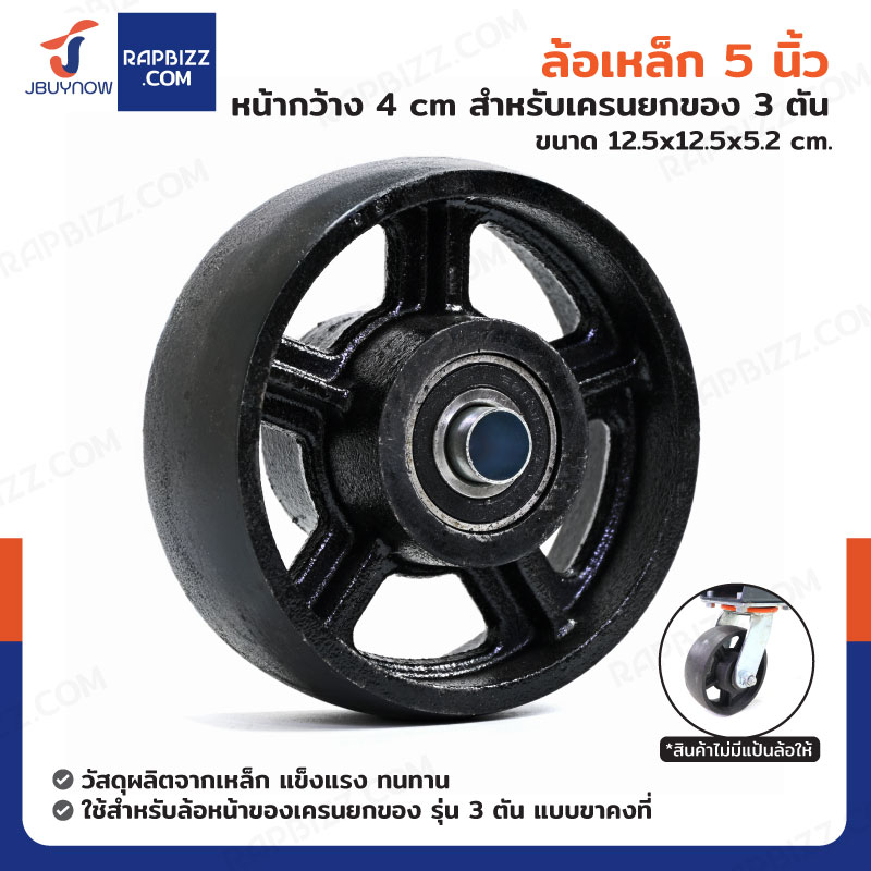 ล้อเหล็ก 5 นิ้ว หน้ากว้าง 4 cm สำหรับเครนยกของ รุ่น 3 ตัน