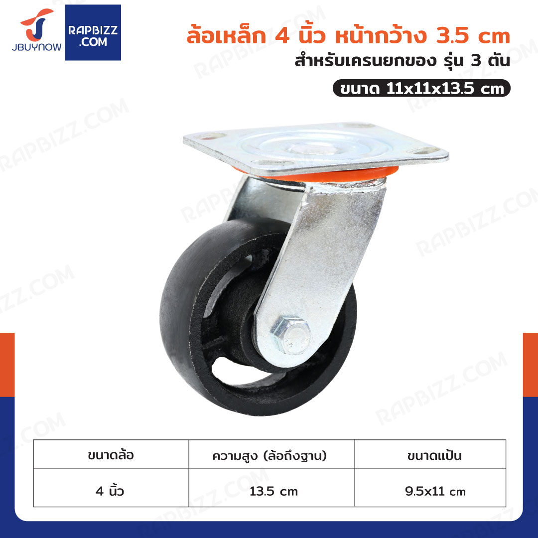 ล้อเหล็ก 4 นิ้ว หน้ากว้าง 3.5 cm สำหรับเครนยกของ รุ่น 3 ตัน