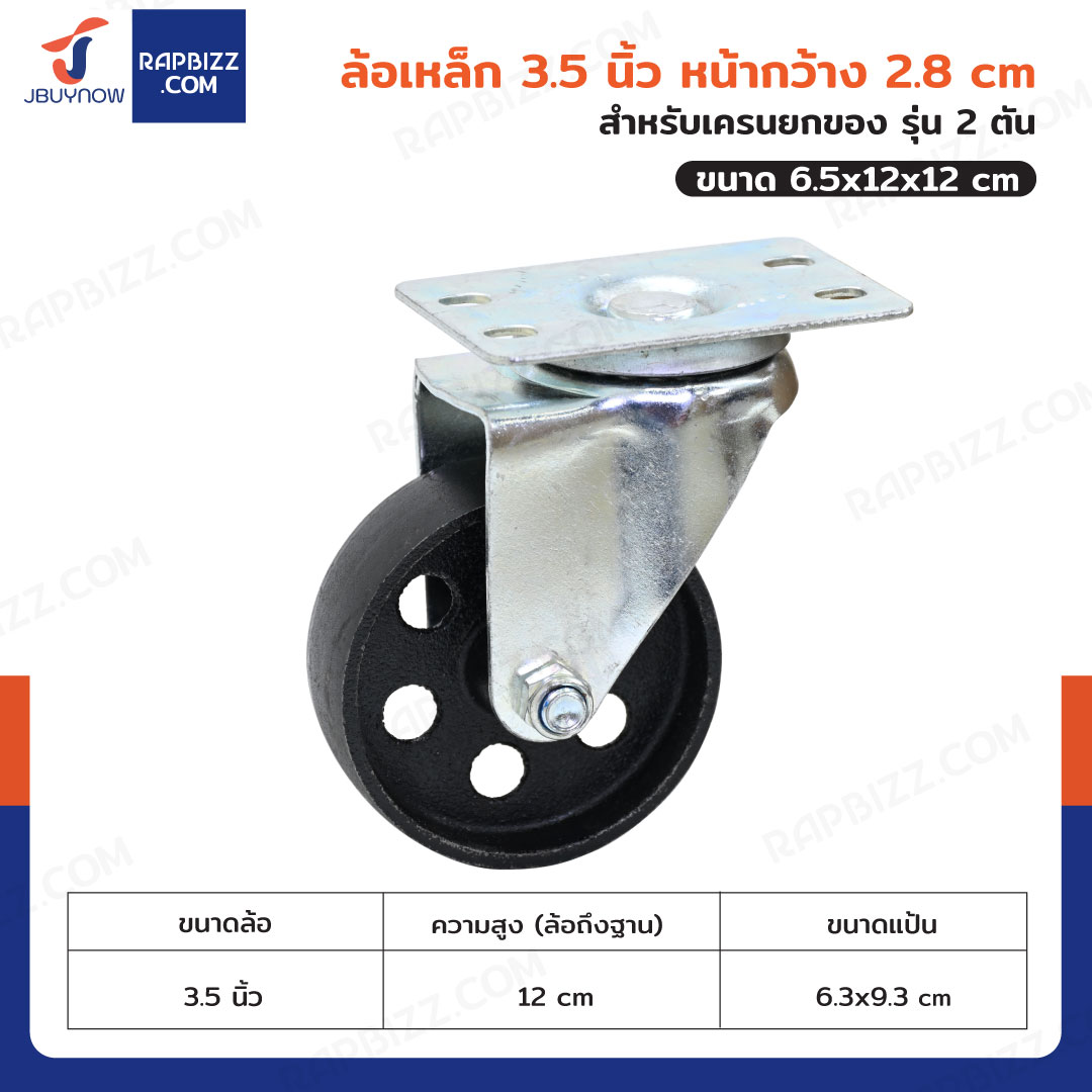 ล้อเหล็ก 3.5 นิ้ว หน้ากว้าง 2.8 cm สำหรับเครนยกของ รุ่น 2 ตัน