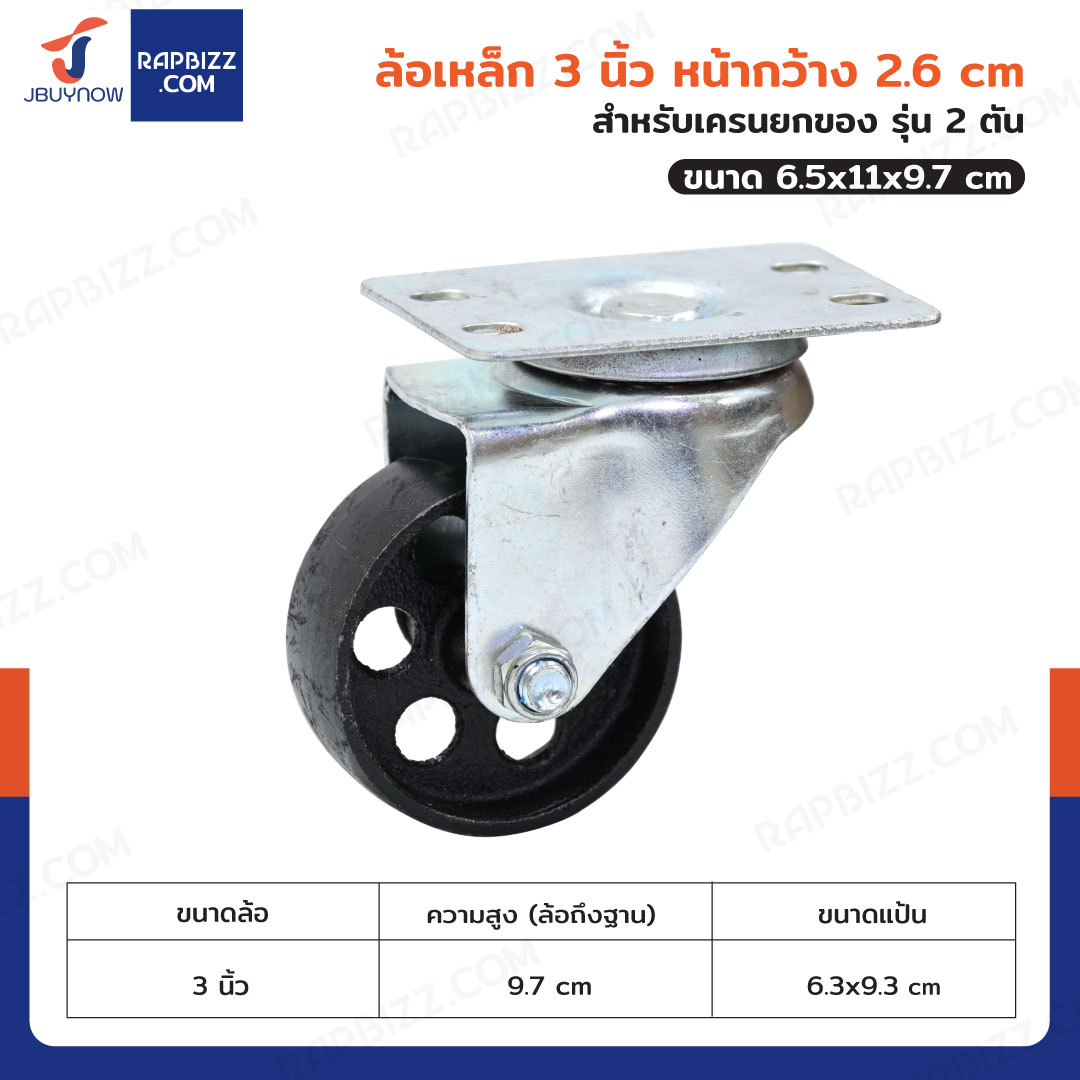 ล้อเหล็ก 3 นิ้ว หน้ากว้าง 2.6 cm สำหรับเครนยกของ รุ่น 2 ตัน