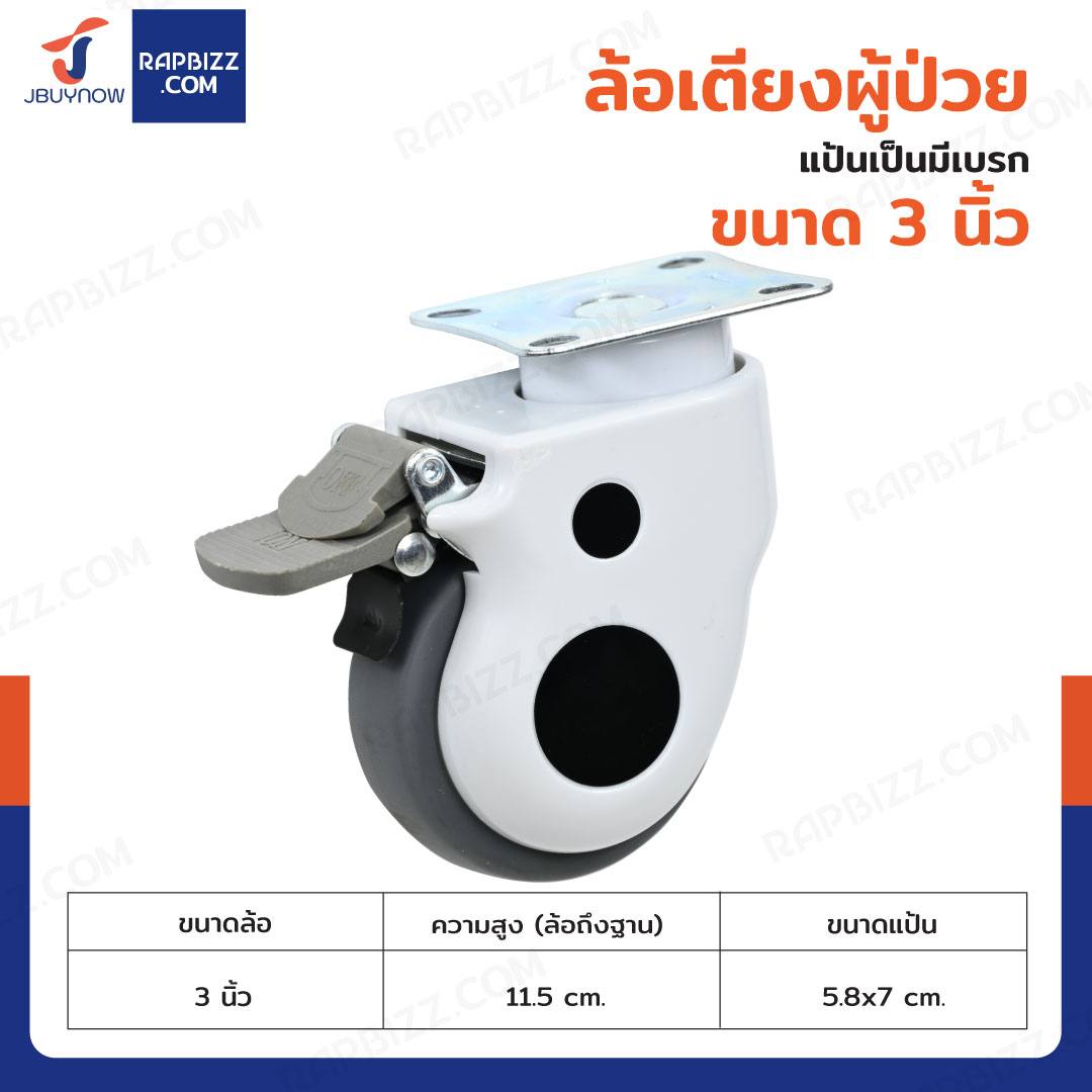 ล้อเตียงผู้ป่วย 3 นิ้ว แป้นเป็นมีเบรก