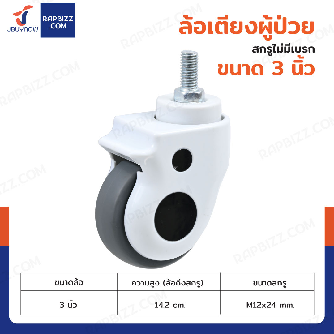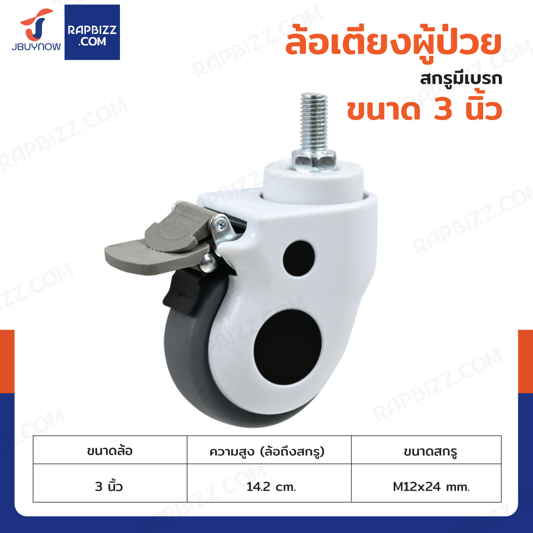 ล้อเตียงผู้ป่วย 3 นิ้ว สกรู M12x24 mm