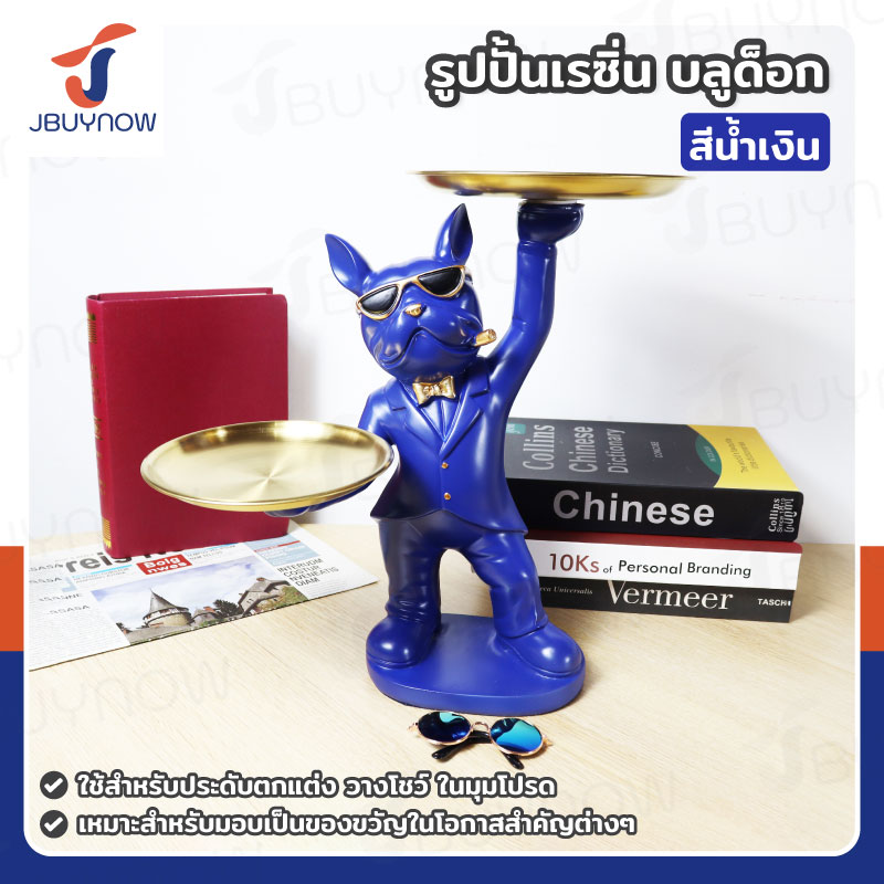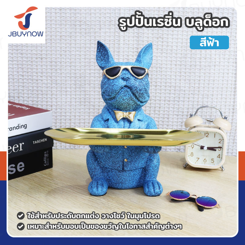รูปปั้นเรซิ่น บลูด็อก 17x32x32 ถาดวางของ รุ่น 4090 สีน้ำเงิน