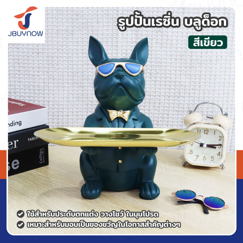 รูปปั้นเรซิ่น บลูด็อก 17x23x19 ซม. มีถาดวางของ รุ่น 2949 สีเขียว