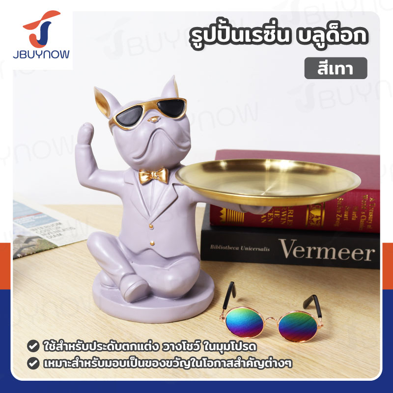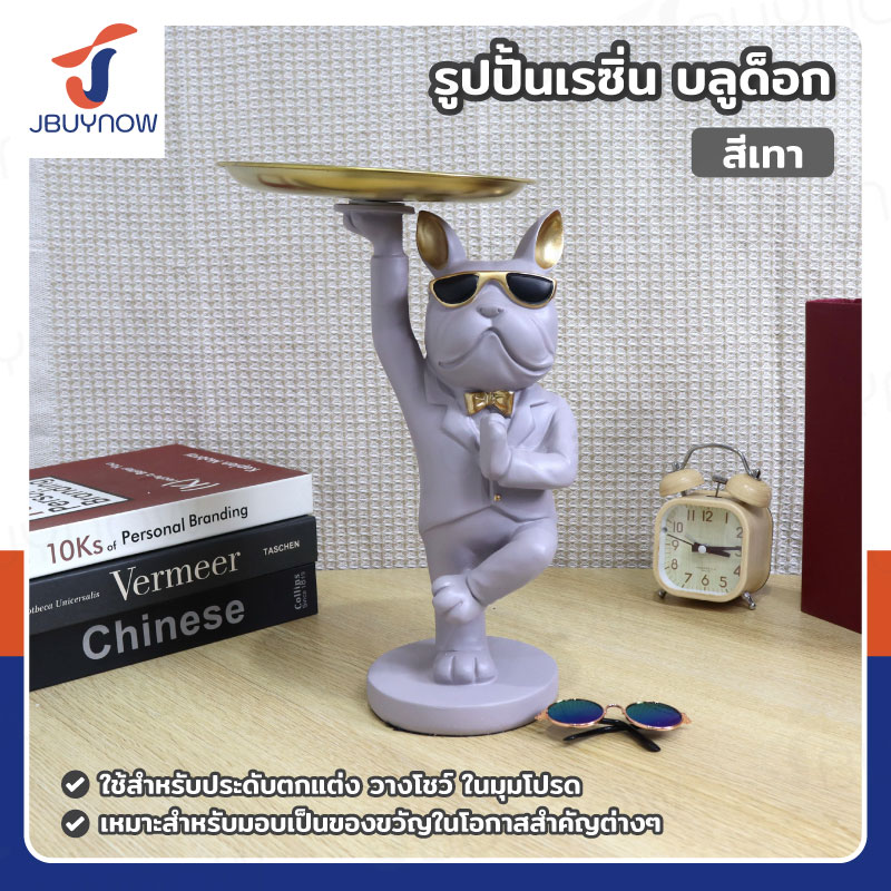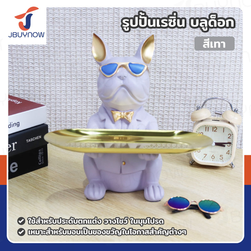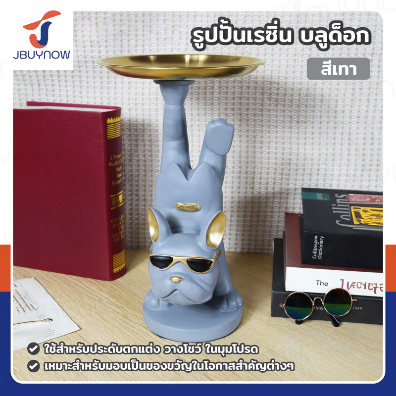 รูปปั้นเรซิ่น บลูด็อก 17x24x19 ถาดวางของ รุ่น 2951 สีเทา