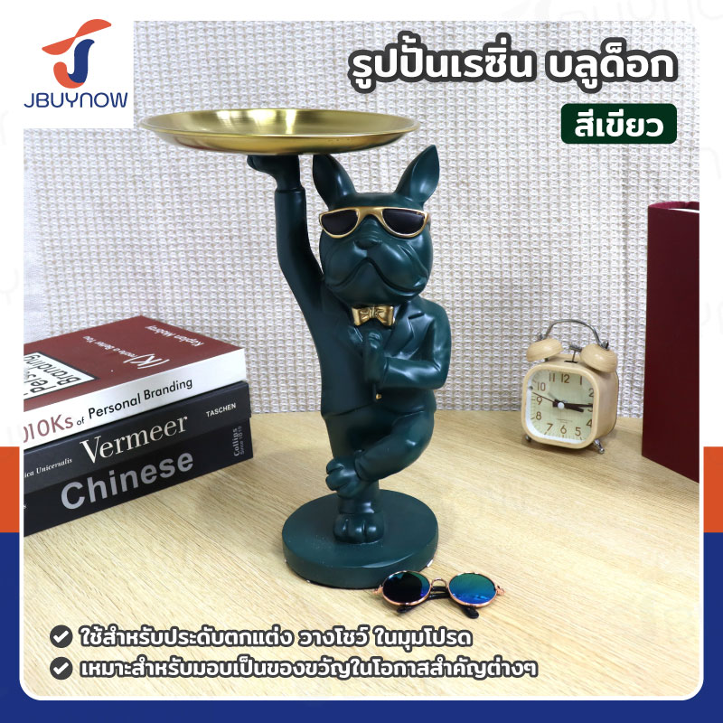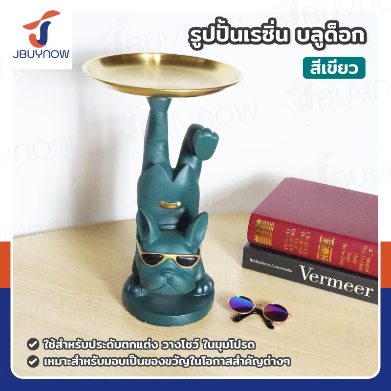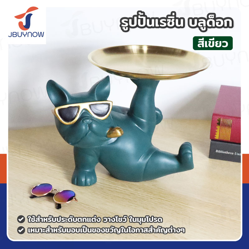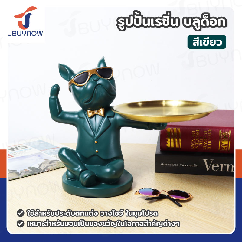 รูปปั้นเรซิ่น บลูด็อก 17x24x19 ถาดวางของ รุ่น 2951 สีเขียว