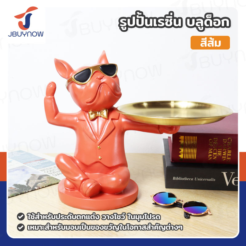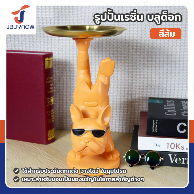รูปปั้นเรซิ่น บลูด็อก 17x19x28 ซม. มีถาดวางของ รุ่น 4094 สีส้ม