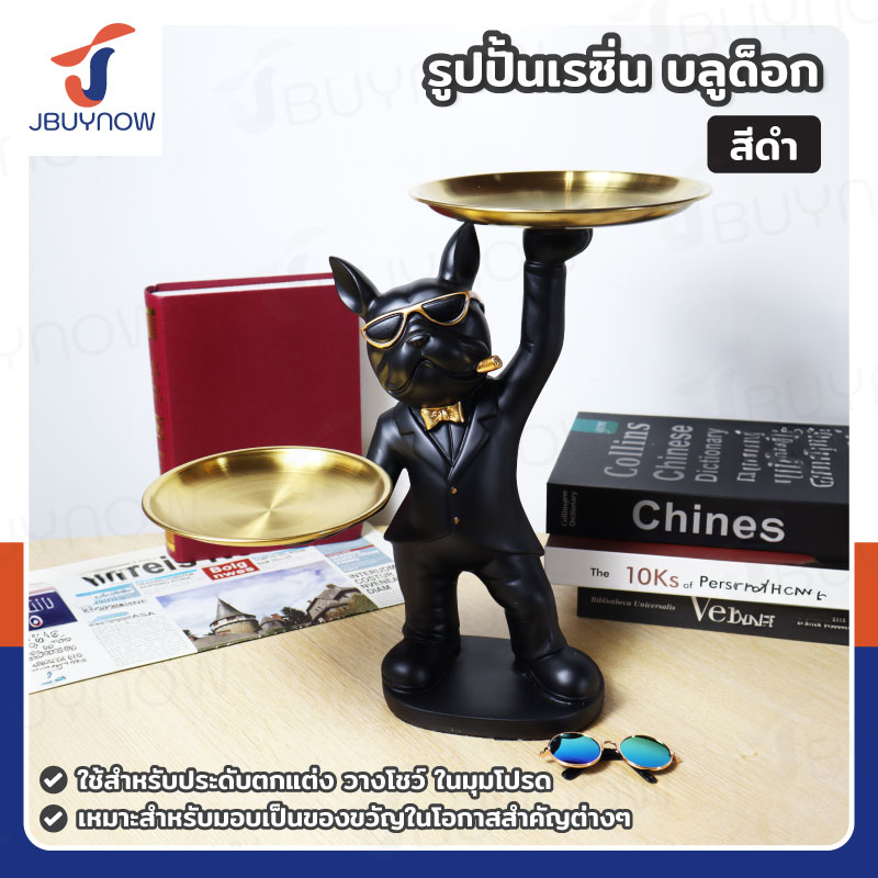 รูปปั้นเรซิ่น บลูด็อก 17x32x32 ถาดวางของ รุ่น 4090 สีดำ