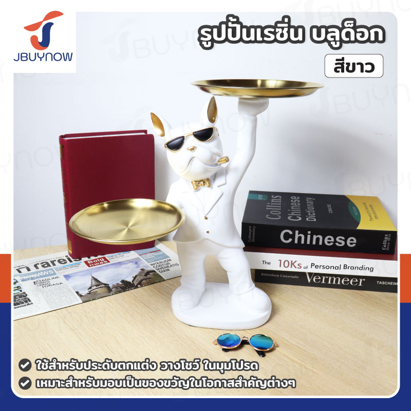รูปปั้นเรซิ่น บลูด็อก 17x32x32 ถาดวางของ รุ่น 4090 สีขาว
