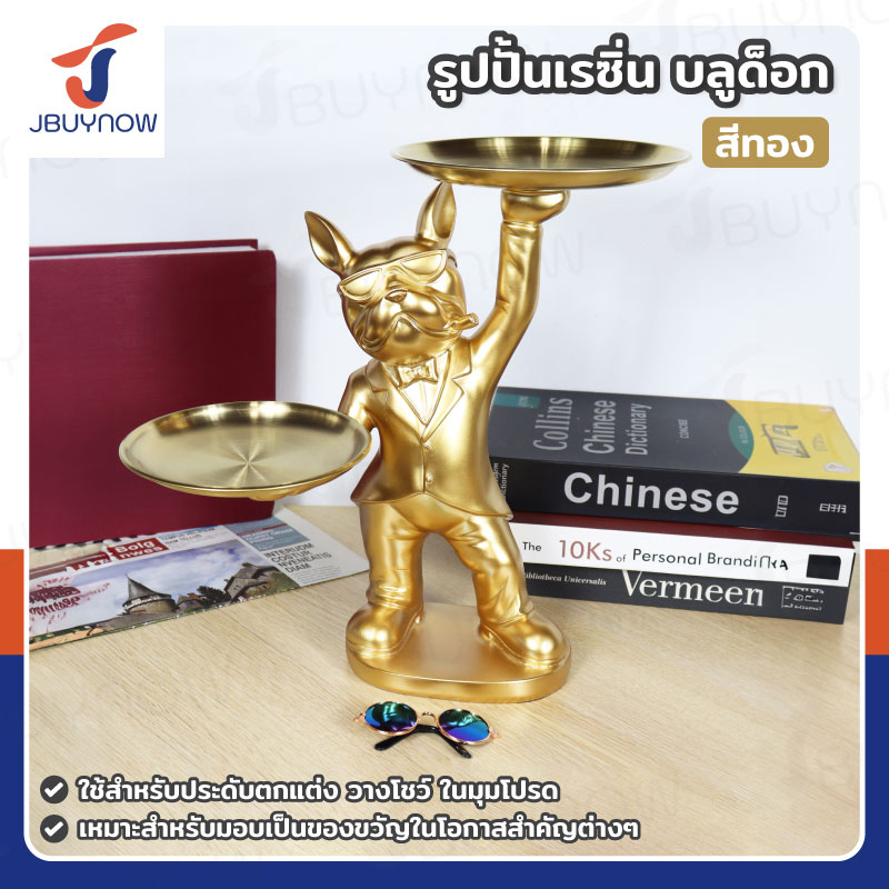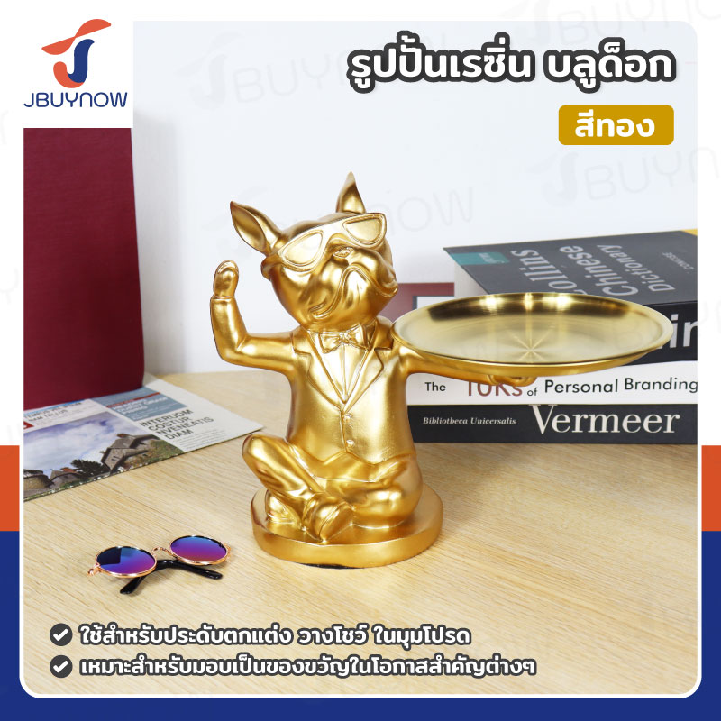 รูปปั้นเรซิ่น บลูด็อก 17x32x32 ถาดวางของ รุ่น 4090 สีทอง