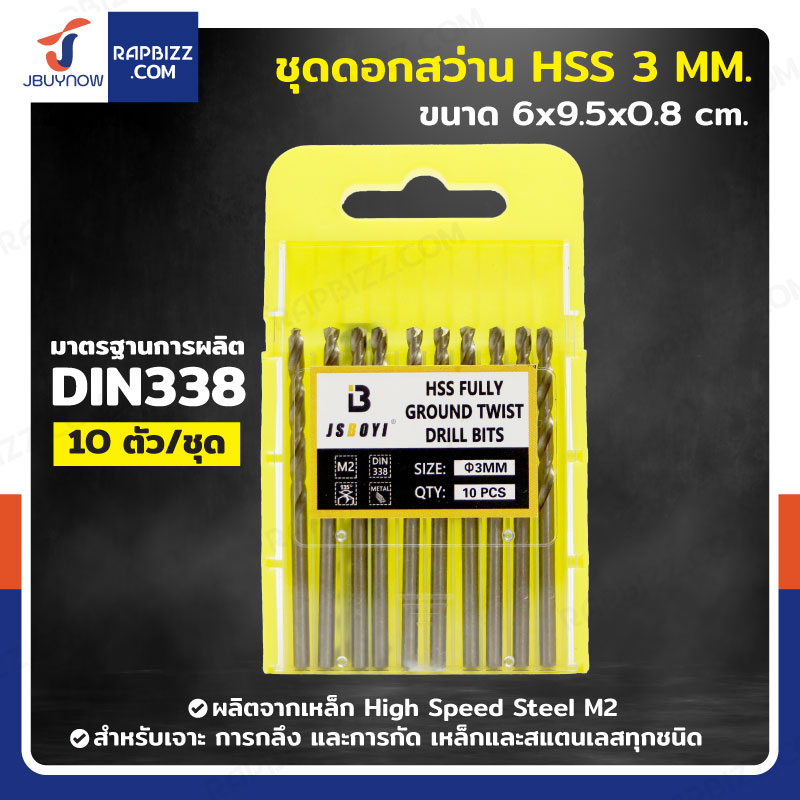 ดอกสว่าน 7/64(3 มม.)ไฮสปีด เคลือบไทเทเนียม เจาะเหล็ก/สแตนเลส/ทองแดง กล่องละ 10 ดอก