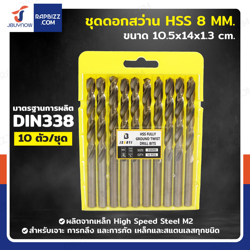 ดอกสว่าน 5/16(8 มม.)ไฮสปีด เคลือบไทเทเนียม เจาะเหล็ก/สแตนเลส/ทองแดง กล่องละ 10 ดอก