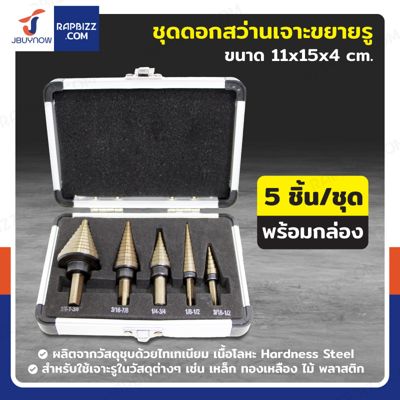 ดอกสว่านเจดีย์ 5 ชิ้น คว้านรู เจาะขยายรู ชุบไทเทเนียม กล่องอลูมิเนียม