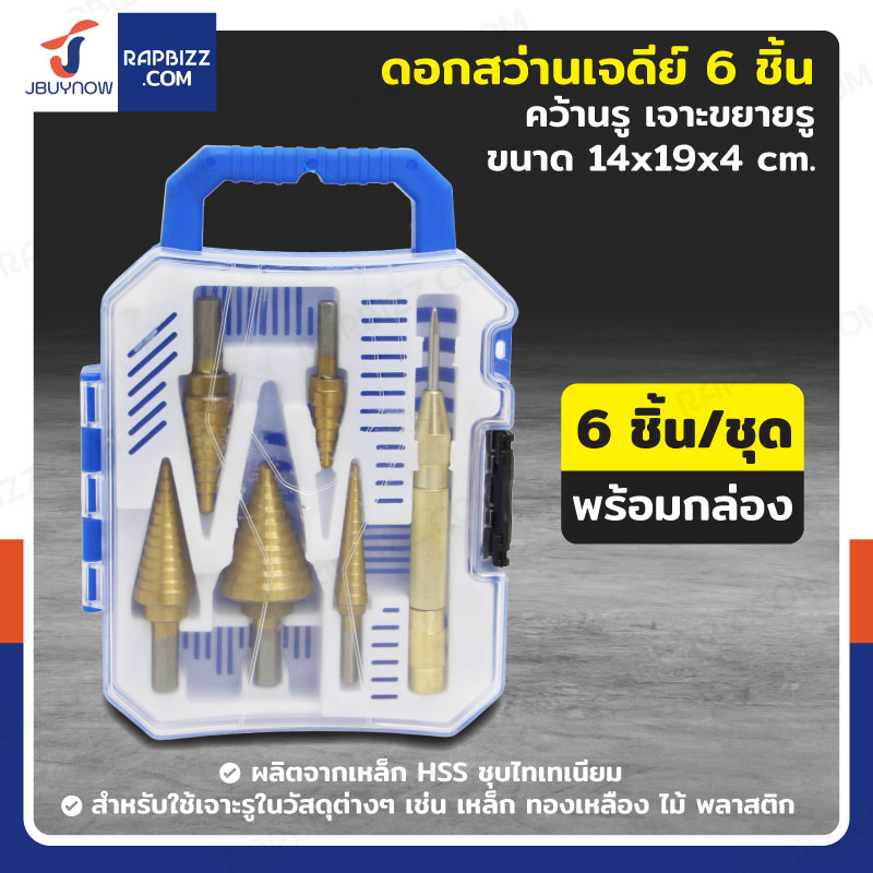 ดอกสว่านเจดีย์ 6 ชิ้น คว้านรู เจาะขยายรู ชุบไทเทเนียม