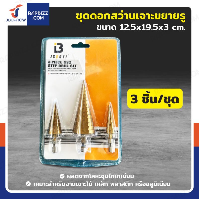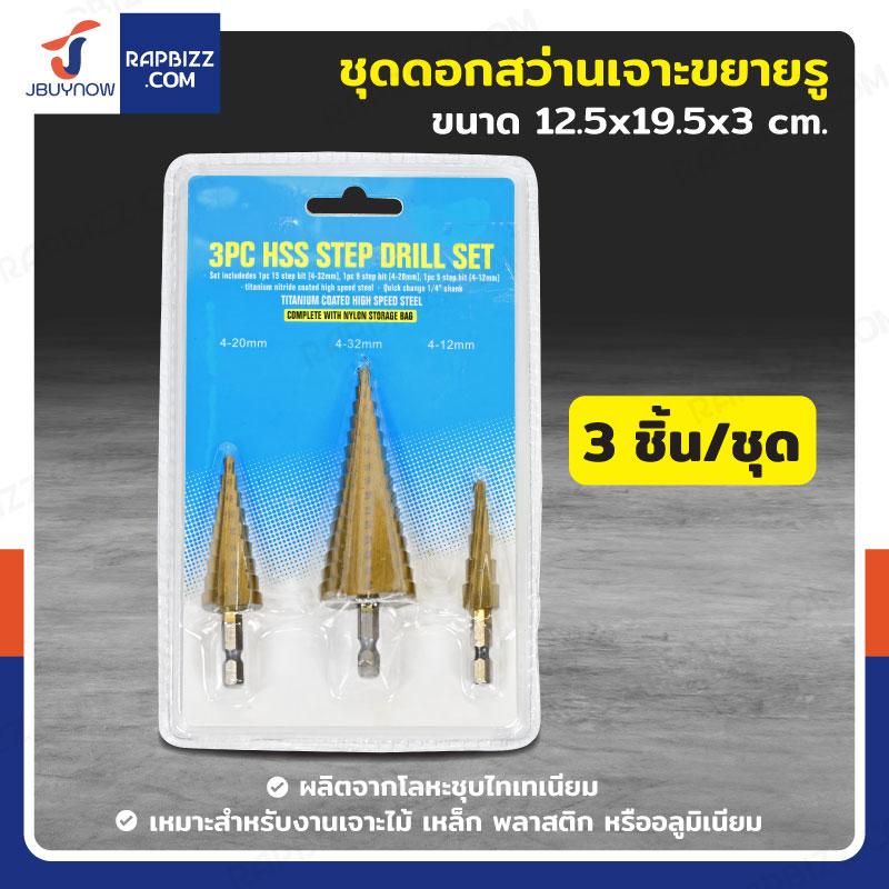 ดอกสว่านเจดีย์ 3 ชิ้น คว้านรู เจาะขยายรู ชุบไทเทเนียม