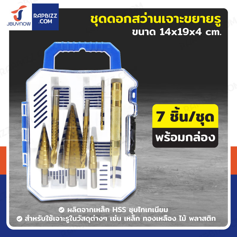 ดอกสว่านเจดีย์ 7 ชิ้น คว้านรู เจาะขยายรู ชุบไทเทเนียม