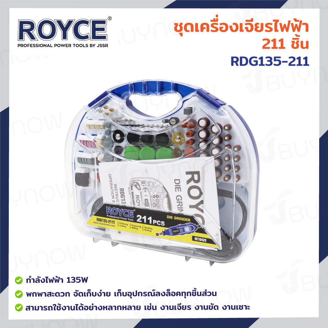 ชุดเครื่องเจียร์ไฟฟ้า 211 ชิ้น 3.2 MM 135W JBUYNOW ROYCE RDG135-211