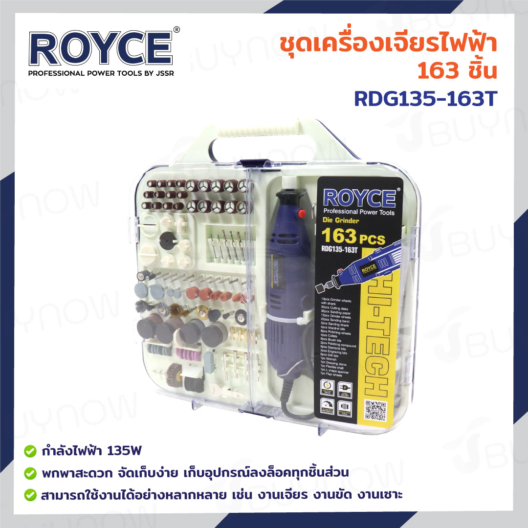 ชุดเครื่องเจียร์ไฟฟ้า 163 ชิ้น 3.2 MM 135W JBUYNOW ROYCE RDG135-163T