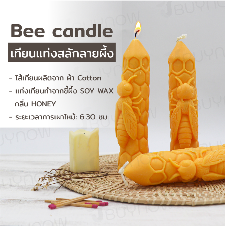 เทียนแท่ง เทียนไขถั่วเหลือง สลัก ลาย ผึ้ง BEES DLE 4x4x16 ซม. RB230504-2
