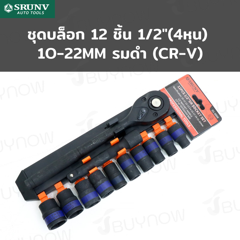 ชุดบล็อก 12 ชิ้น 1/2 นิ้ว (4 หุน) 10-22MM รมดำ CR-V JBUYNOW SRUNV RB230601-18