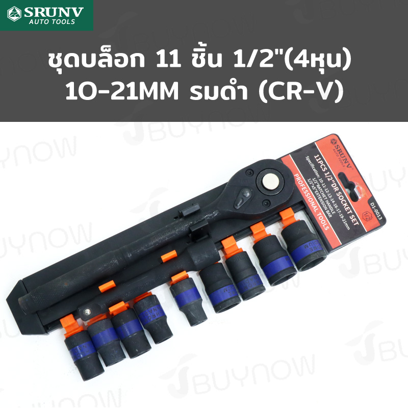 ชุดบล็อก 11 ชิ้น 1/2 นิ้ว (4 หุน) 10-21MM รมดำ CR-V JBUYNOW SRUNV RB230601-20