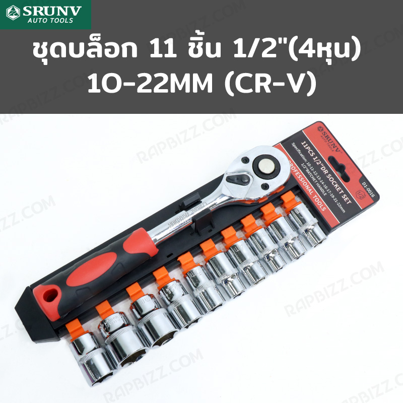 ชุดบล็อก 11 ชิ้น 1/2 นิ้ว (4 หุน) 10-22MM CR-V JBUYNOW SRUNV RB230601-21