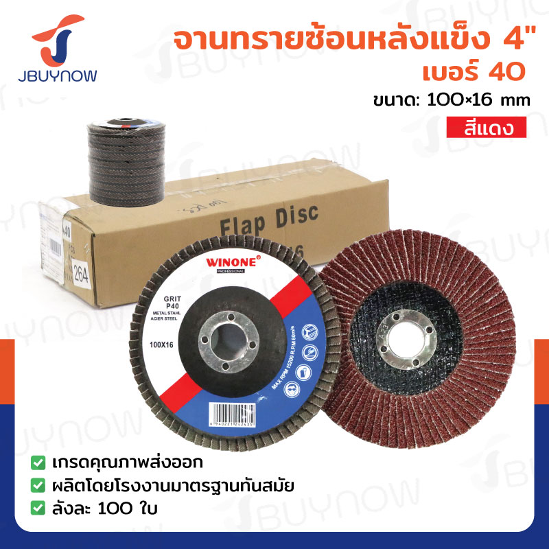 จานทรายซ้อนหลังแข็ง 4 นิ้ว เบอร์ 40 สีแดง ลังละ 100 แผ่น JBUYNOW TG-014/ONS