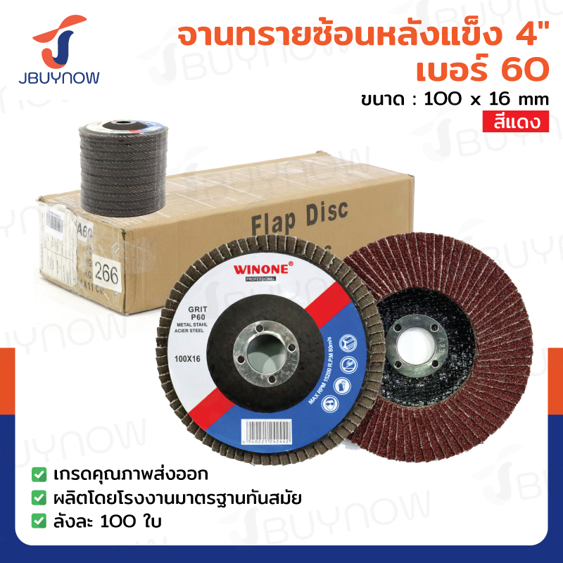 จานทรายซ้อนหลังแข็ง 4 นิ้ว เบอร์ 60 สีแดง ลังละ 100 แผ่น JBUYNOW TG-015/ONS