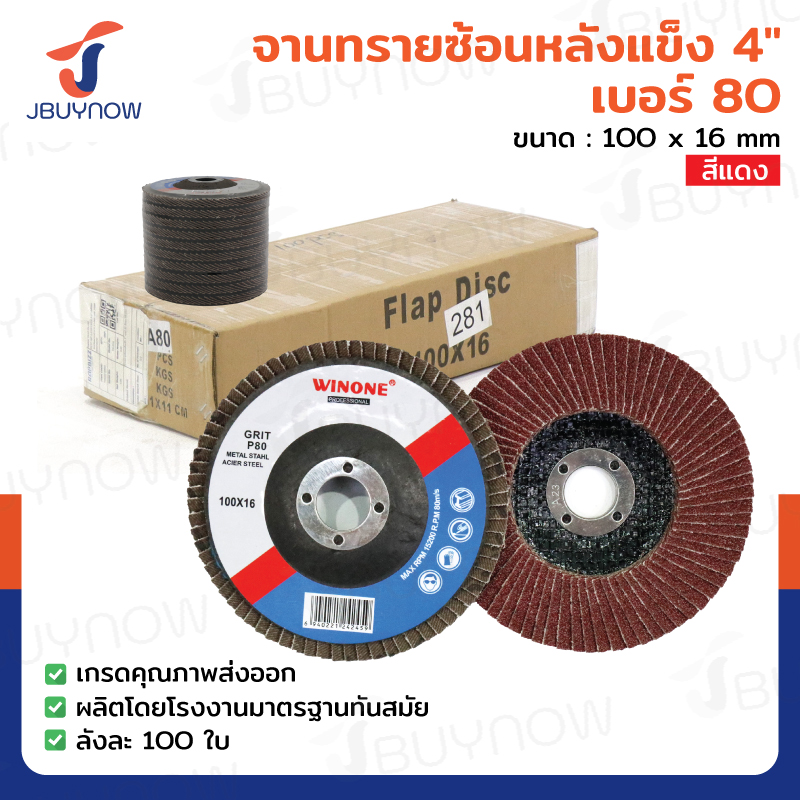 จานทรายซ้อนหลังแข็ง 4 นิ้ว เบอร์ 80 สีแดง ลังละ 100 แผ่น JBUYNOW TG-016/ONS