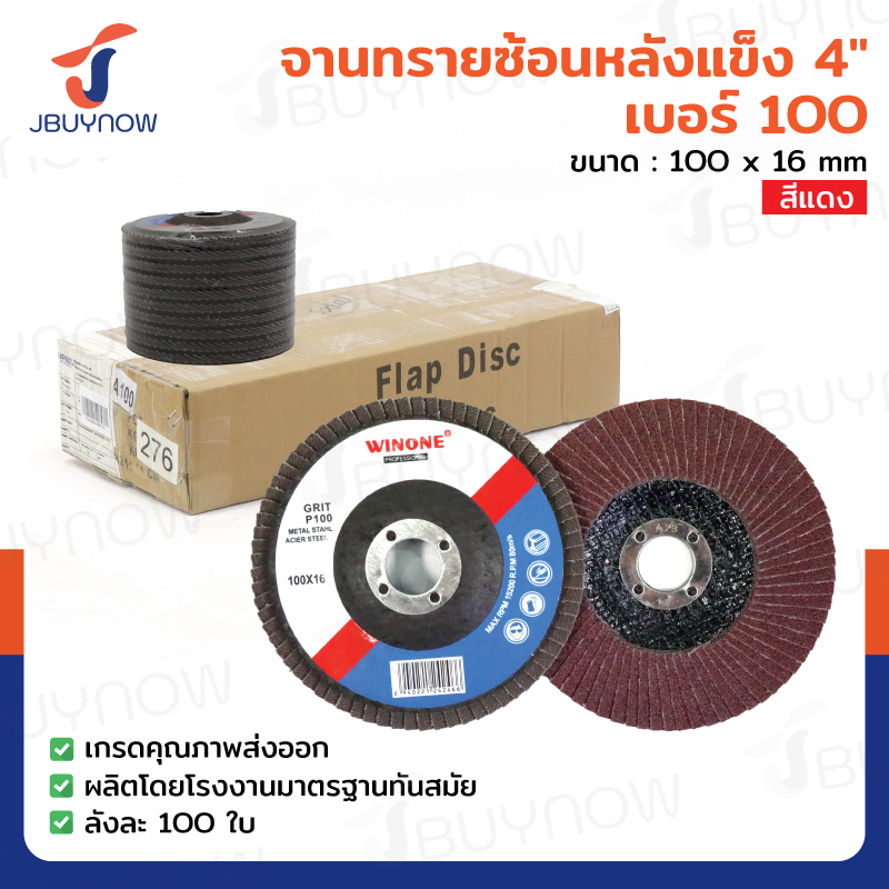 จานทรายซ้อนหลังแข็ง 4 นิ้ว เบอร์ 100 สีแดง ลังละ 100 แผ่น JBUYNOW TG-017/ONS