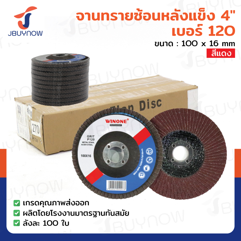 จานทรายซ้อนหลังแข็ง 4 นิ้ว เบอร์ 120 สีแดง ลังละ 100 แผ่น JBUYNOW TG-018/ONS