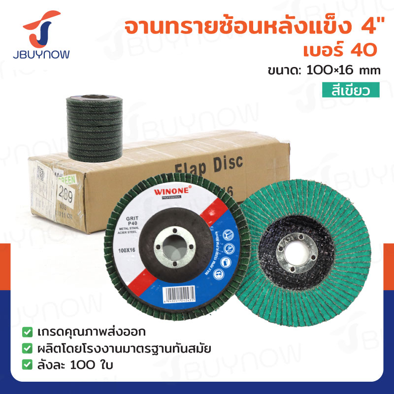 จานทรายซ้อนหลังแข็ง 4 นิ้ว เบอร์ 40 สีเขียว ลังละ 100 แผ่น JBUYNOW TG-019/ONS
