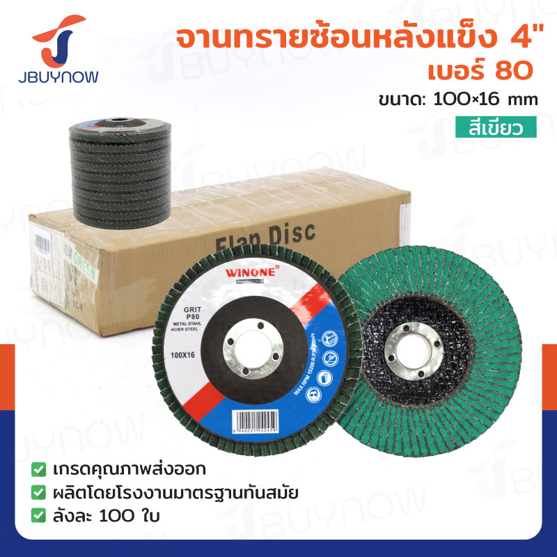 จานทรายซ้อนหลังแข็ง 4 นิ้ว เบอร์ 80 สีเขียว ลังละ 100 แผ่น JBUYNOW TG-021/ONS