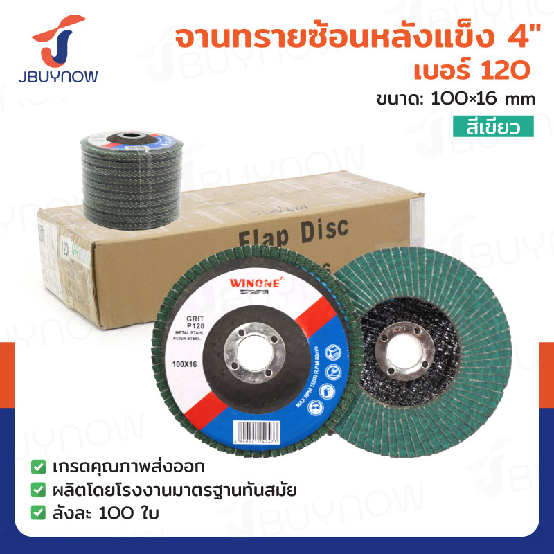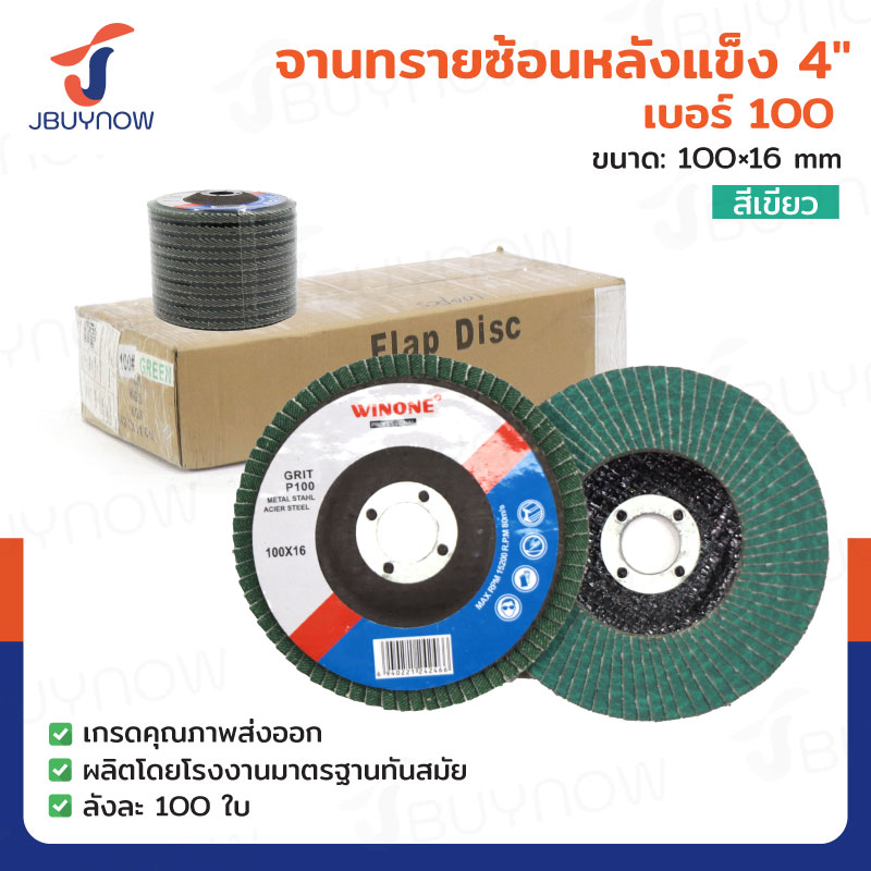 จานทรายซ้อนหลังแข็ง 4 นิ้ว เบอร์ 100 สีเขียว ลังละ 100 แผ่น JBUYNOW TG-022/ONS