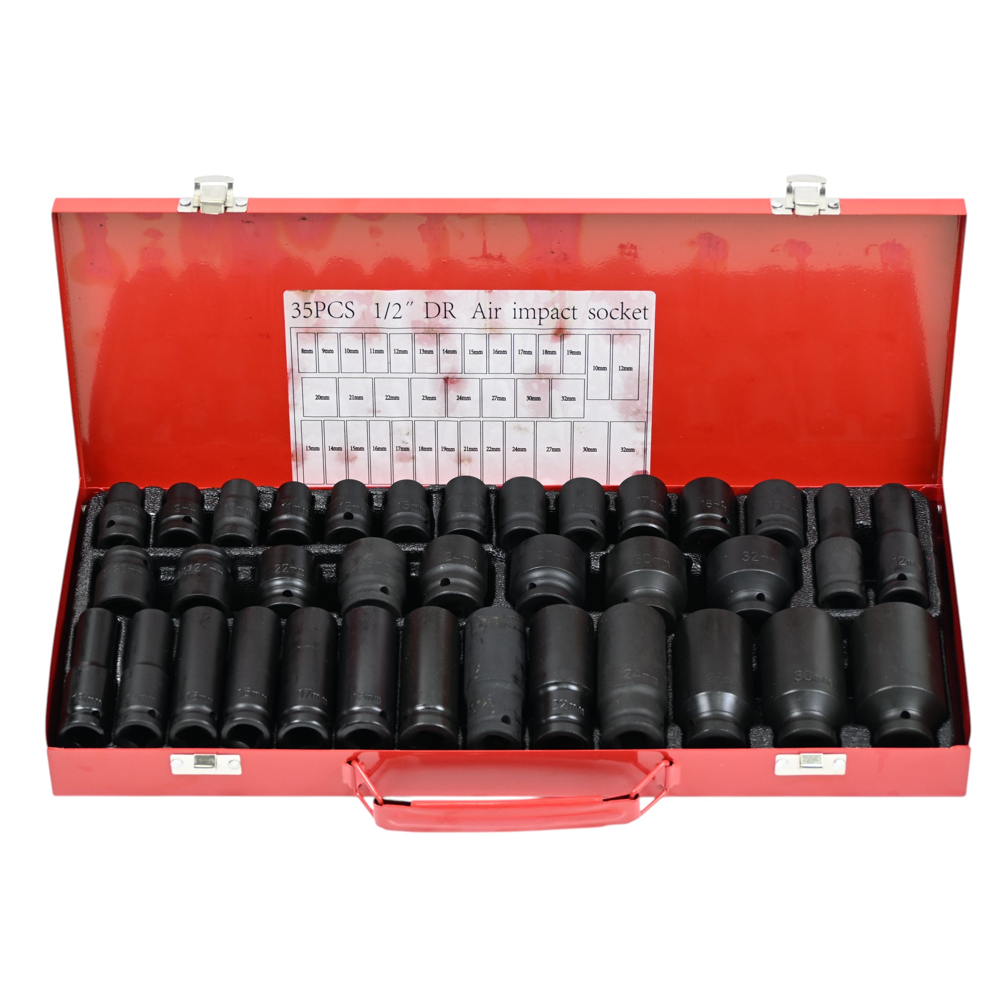 ชุดบล็อก 1/2 นิ้ว(4หุน) ลูกบล็อกลมยาว 35 ชิ้น เหล็ก ดำ CR-V