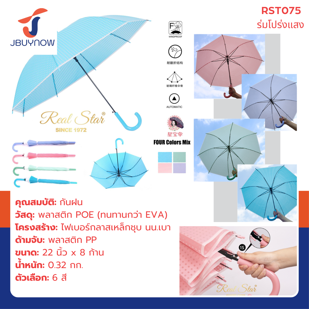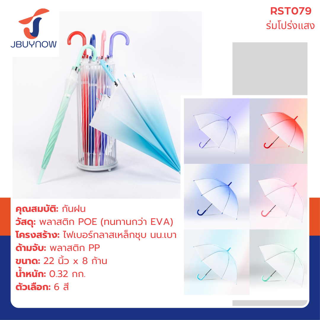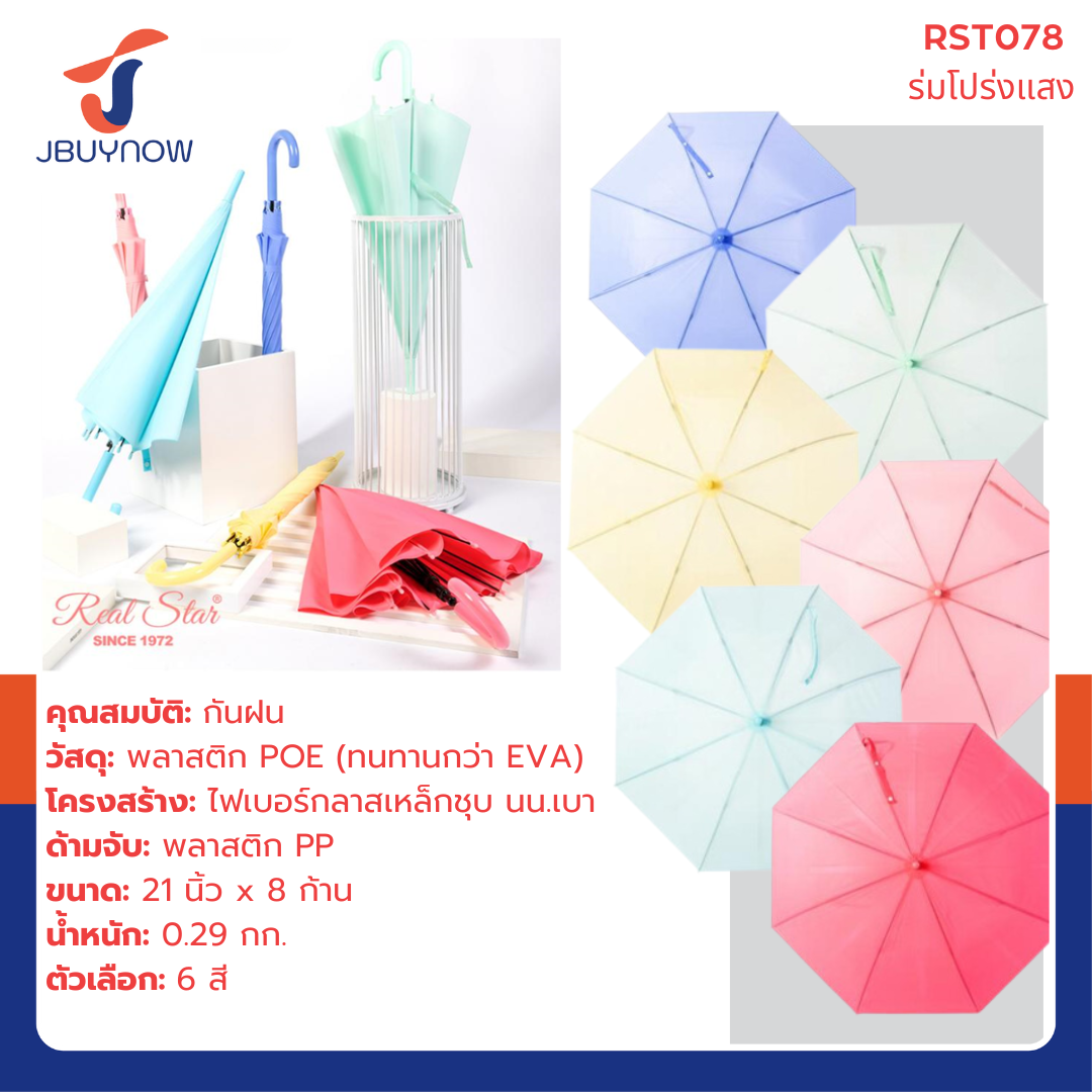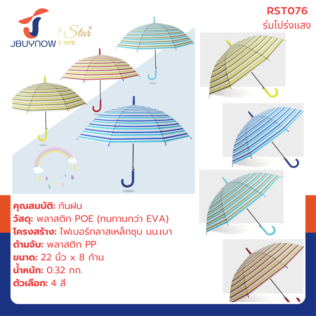 ร่ม POE ร่มกันฝน ด้ามยาว คละสี RST935