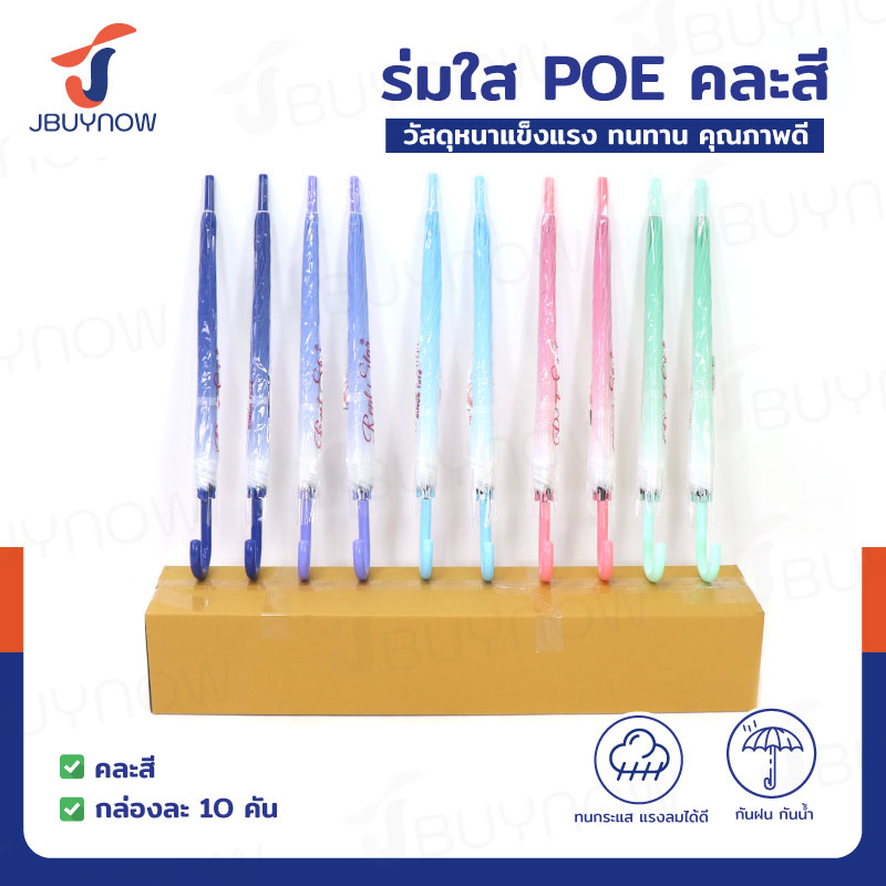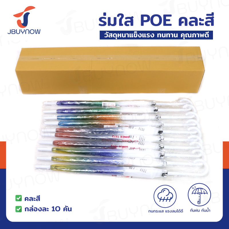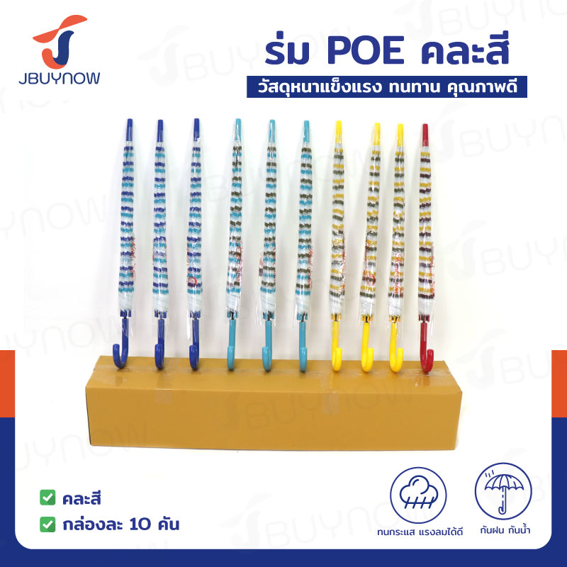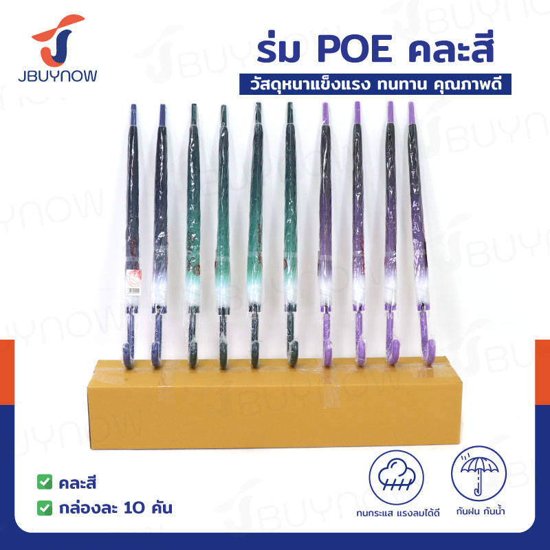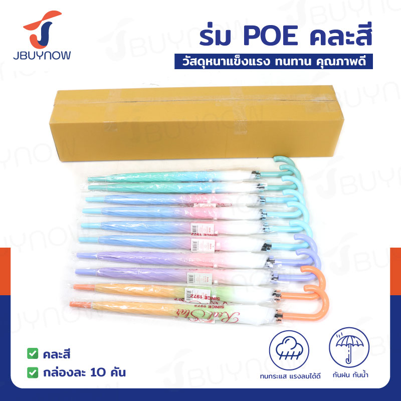 ร่ม POE ร่มกันฝน ด้ามยาว คละสี แพ็คละ 10 ชิ้น