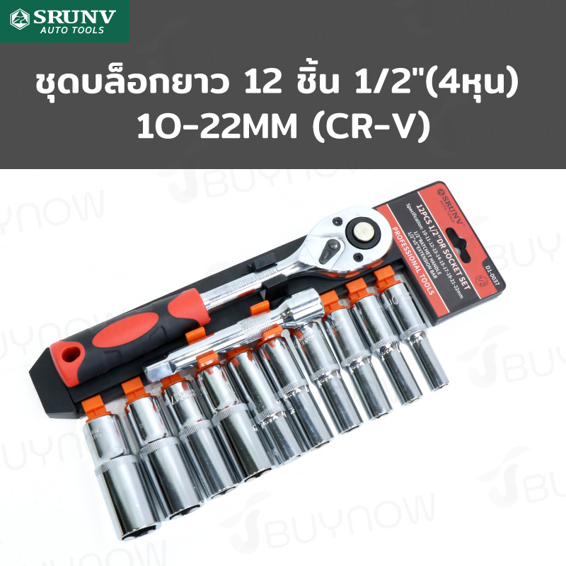 ชุดบล็อก ยาว 12 ชิ้น 1/2 นิ้ว (4 หุน) 10-22MM CR-V JBUYNOW SRUNV RB230601-19