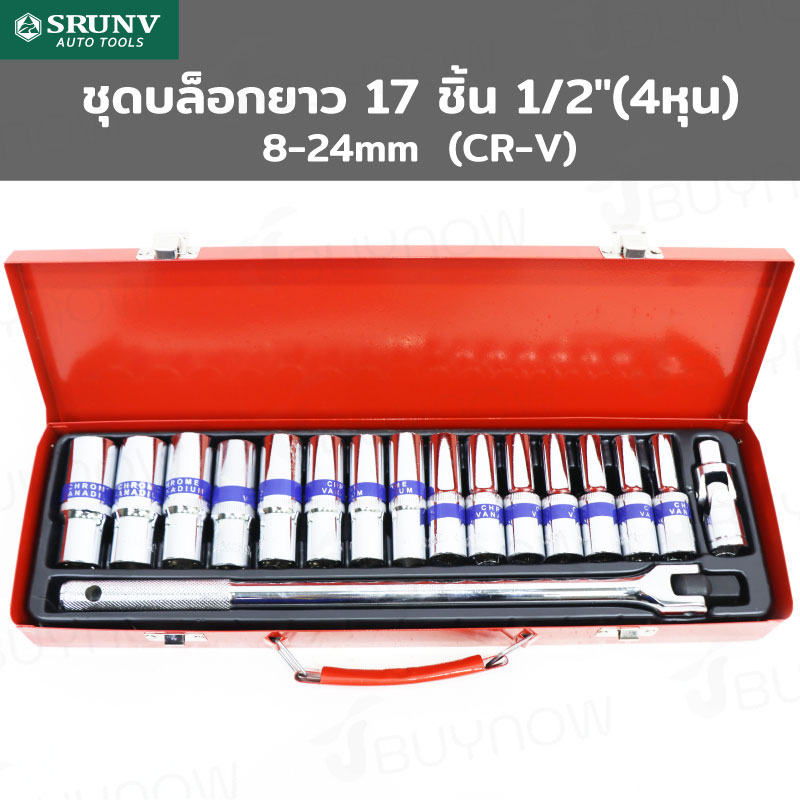 ชุดบล็อก ยาว 17 ชิ้น 1/2 นิ้ว (4 หุน) 8-24MM CR-V JBUYNOW SRUNV A2-D01701