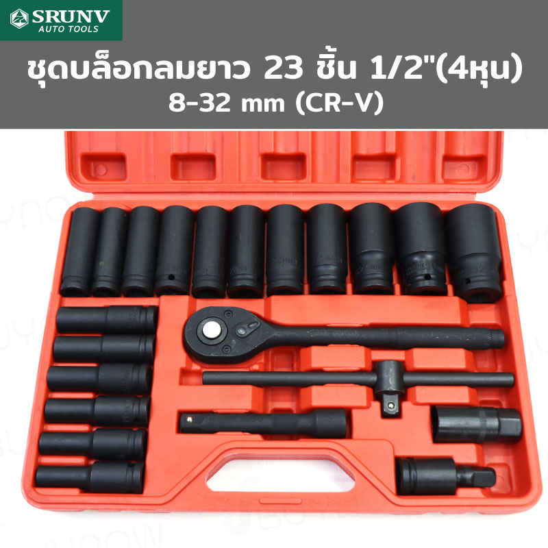 ชุดบล็อก ลมยาว 23 ชิ้น 1/2 นิ้ว (4 หุน) 8-32MM CR-V JBUYNOW SRUNV QD-TZGJ008